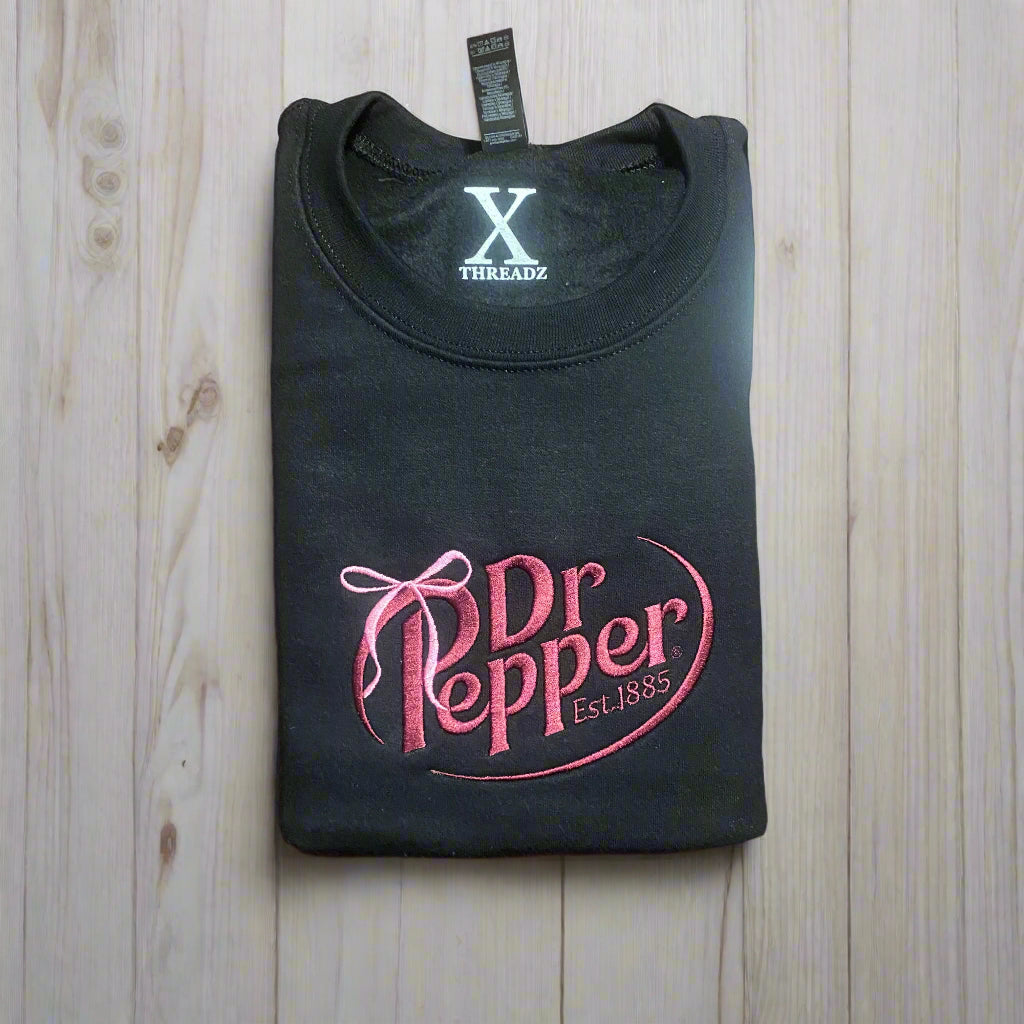 Indulge in your love for the iconic Dr Pepper or Coca Cola with this embroidered sweatshirt featuring a pink bow. The high-quality embroidery and unisex fit make it the perfect addition to any soda lover's wardrobe. Enjoy your favorite soda in style.