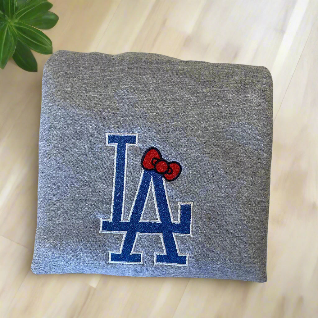 Get ready to show off your love for both the LA Dodgers and Hello Kitty with the LA Bow sweatshirt! With a playful touch featuring the iconic cat, this sweatshirt is perfect for any fan looking to make a statement (or show off their quirky side). Go team!