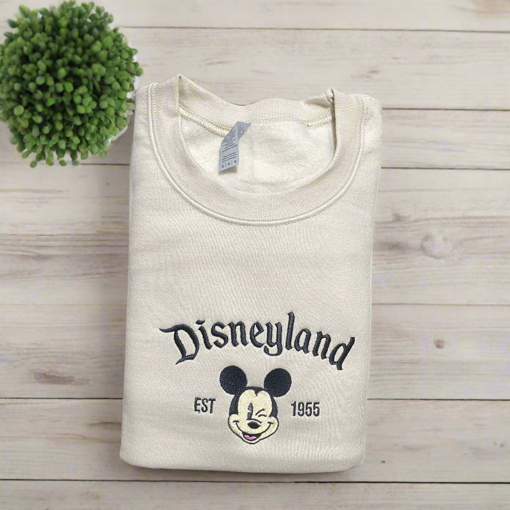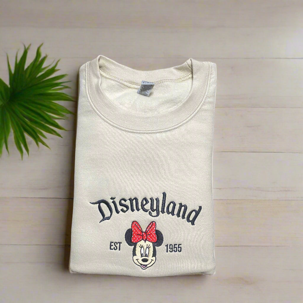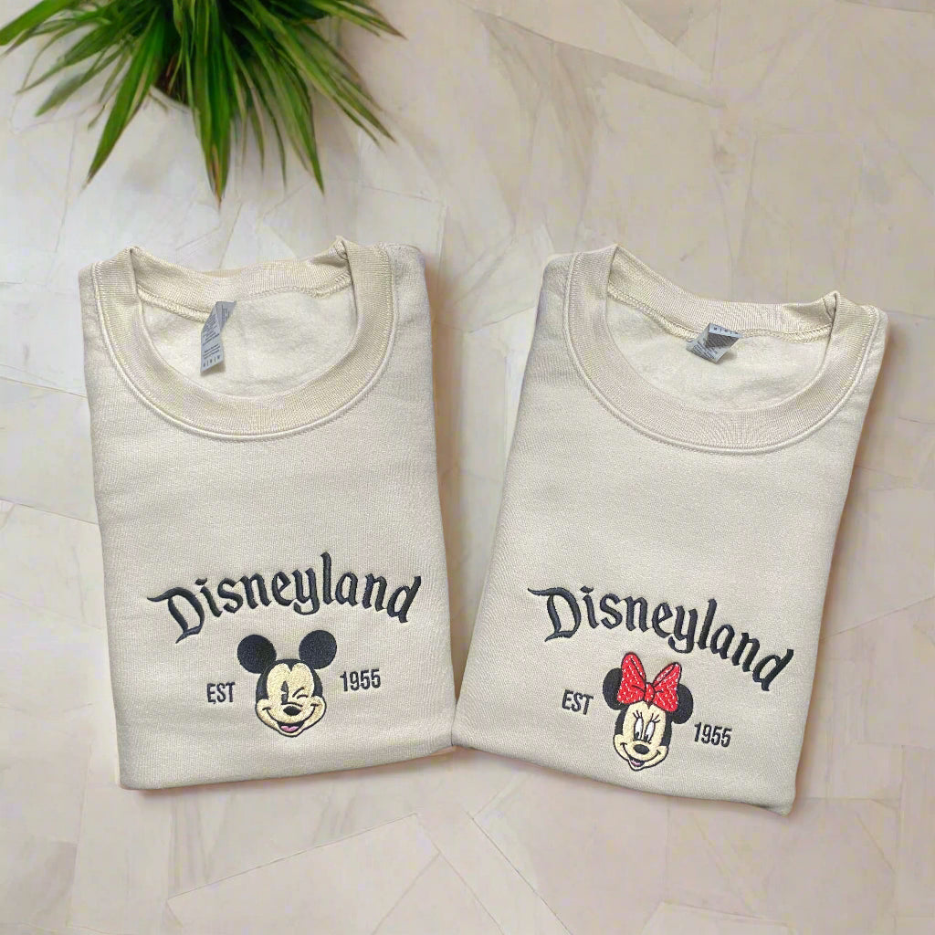 Unleash your inner Disney fan with this delightful Disneyland Mickey and Minnie sweatshirt. The adorable design features your favorite cartoon couple, perfect for stylishly showing off your love for Disney. Stay cozy and cute with this must-have addition to your wardrobe!