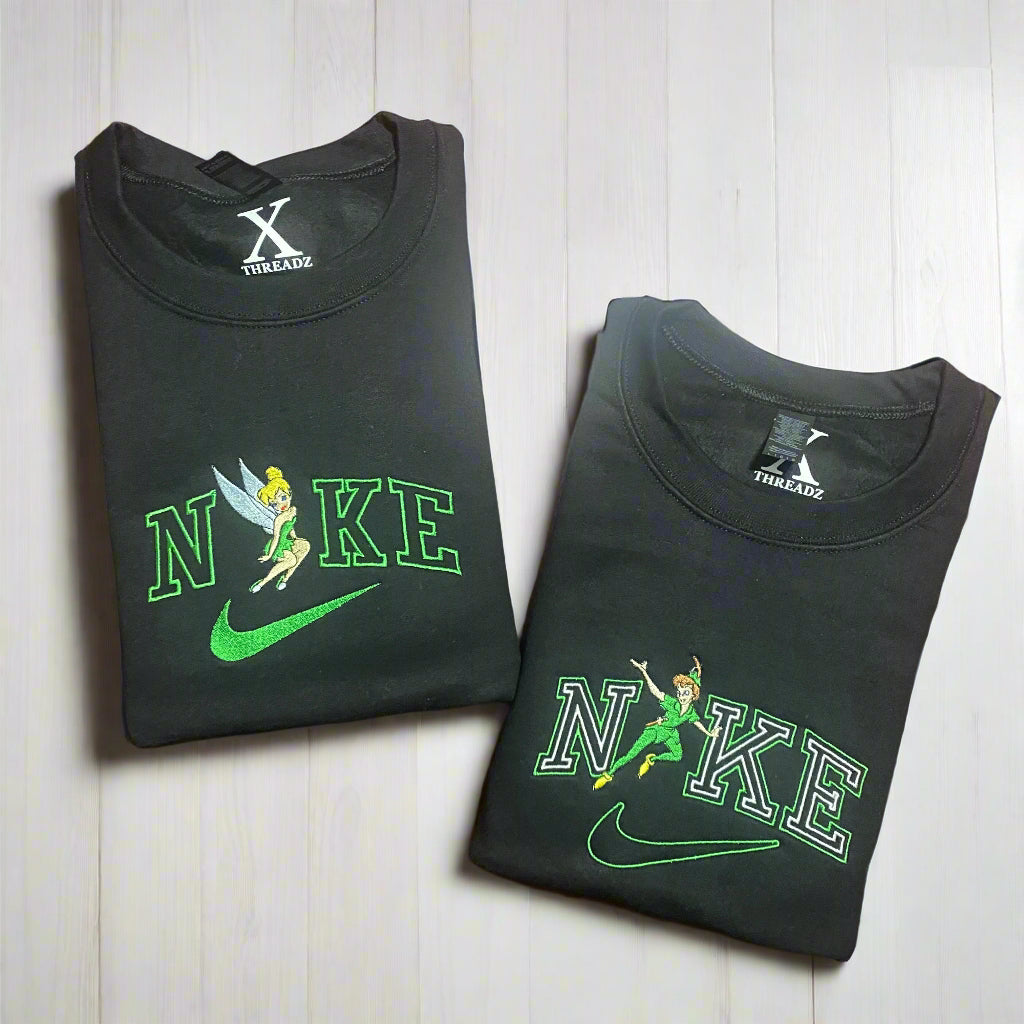 Add a touch of magic to your everyday wardrobe with our Tinkerbell and Peter Pan embroidered sweatshirts featuring the iconic duo. Perfect for fans of the beloved theme parks, you'll feel like you're flying every time you wear it. (No fairy dust required!)